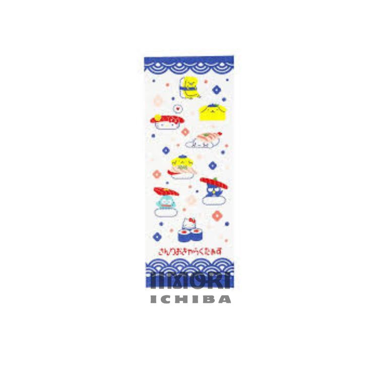Ein japanisches Baumwolle-Handtuch mit Sanrio Charakter und Sushi Muster.